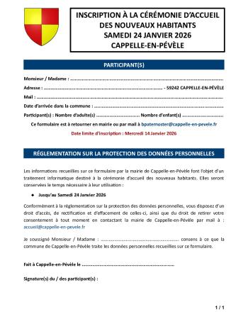 Vous êtes arrivés à Cappelle-en-Pévèle en 2025 et souhaitez participer à cette cérémonie ? Les nouveaux habitants intéressés peuvent dès à présent se rapprocher de la mairie pour s’inscrire (avant le 14/01/2026).