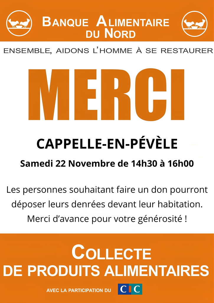 La collecte de la Banque Alimentaire aura lieu le Samedi 22 Novembre.