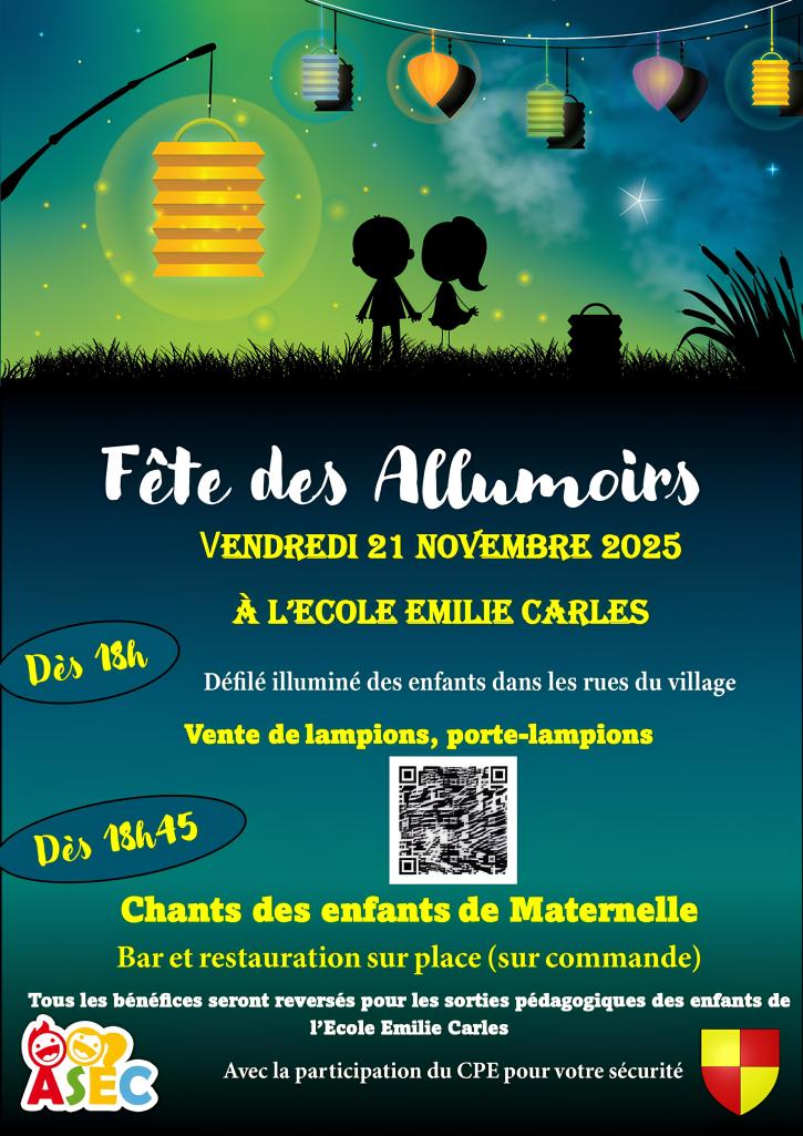 Rendez-vous le Vendredi 21 Novembre à 18h sur le parvis de l’école pour un défilé avec lampions dans les rues du village suivi d’un spectacle de chants à la salle des fêtes.
