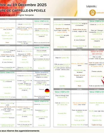 Menu du 3 Novembre au 19 Décembre 2025