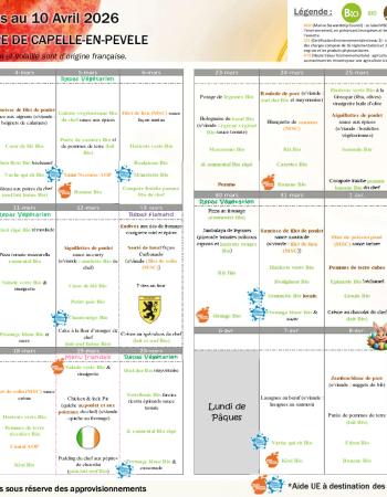 Menu du 2 Mars 2026 au 10 Avril 2026