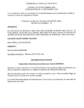 Instauration d'une bourse scolaire pour l'année 2020/2021