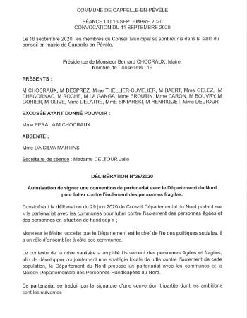 Autorisation de signer une convention de partenariat avec le Département du Nord pour lutter contre l'isolement des personnes fragiles