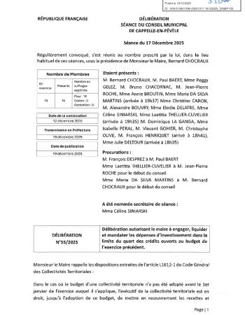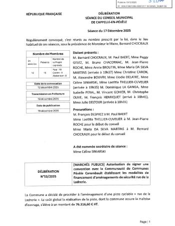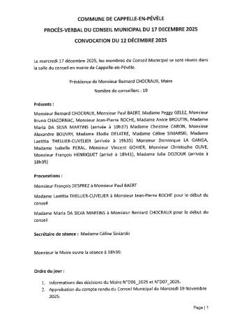 Retrouvez le procès-verbal et l'ensemble des délibérations de la séance du 17 décembre 2025.