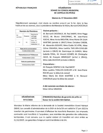 [FINANCES] Maintien de garantie de prêts en faveur de la société SIA Habitat