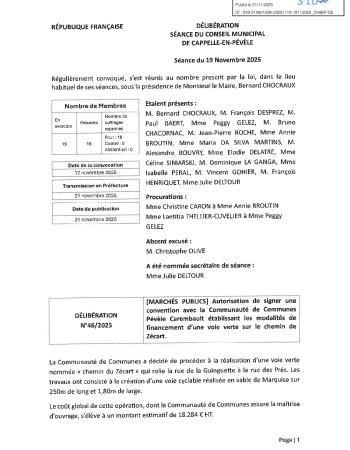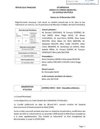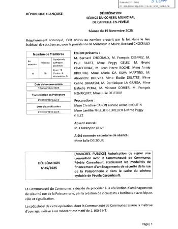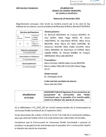Retrouvez le procès-verbal et l'ensemble des délibérations de la séance du 19 novembre 2025.
