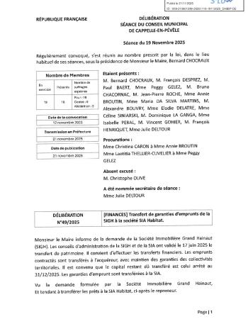 [FINANCES] Transfert de garanties d’emprunts de la SIGH à la société SIA Habitat