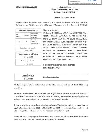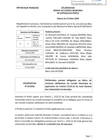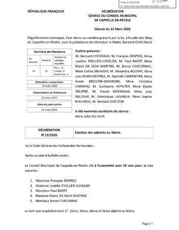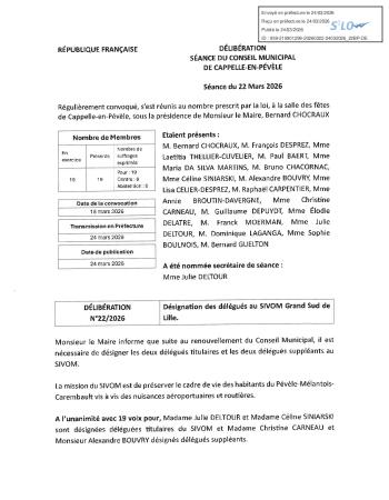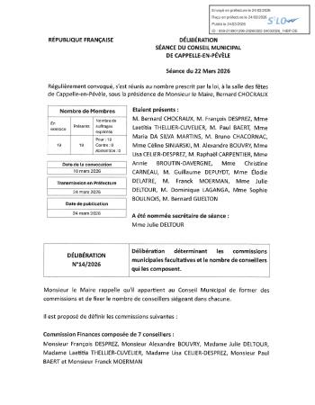 Retrouvez le procès-verbal et l'ensemble des délibérations de la séance du 22 mars 2026.