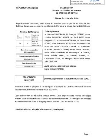 [FINANCES] Octroi de la subvention 2026 au CCAS