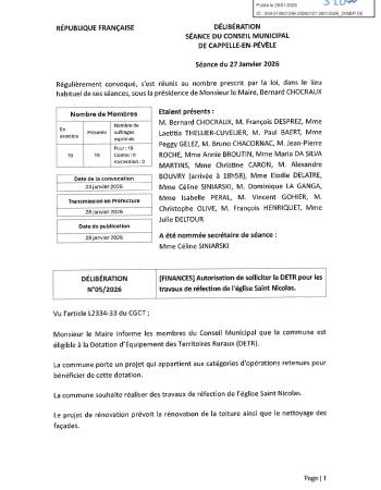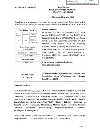 Retrouvez le procès-verbal et l'ensemble des délibérations de la séance du 27 janvier 2026.