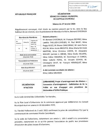 [URBANISME] Projet d’aménagement des Blatiers – Concession d’aménagement - Sollicitation de M. le Préfet en vue d'engager une procédure de Déclaration d'Utilité Publique