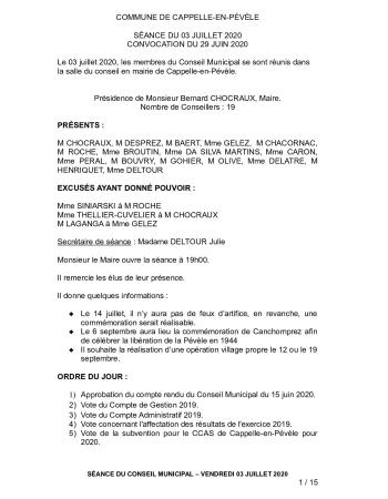 Retrouvez le procès-verbal et l'ensemble des délibérations de la séance du 3 juillet 2020.