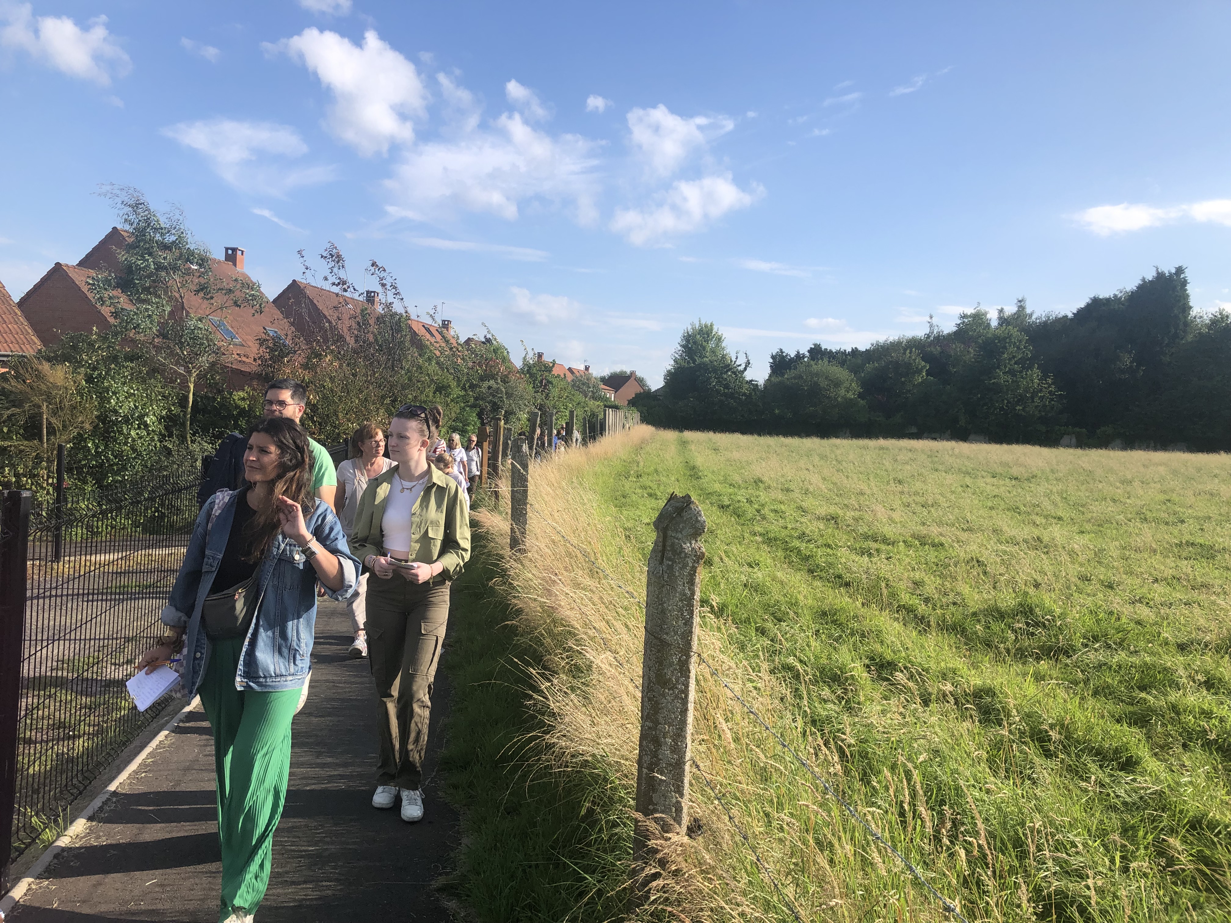 Plus de 20 personnes, toutes générations confondues, se sont réunies le mercredi 10 juillet pour le premier atelier de concertation. Pendant 1h30, les habitants et futurs habitants ont déambulé à travers différents quartiers, en empruntant rues, voyettes et champs.