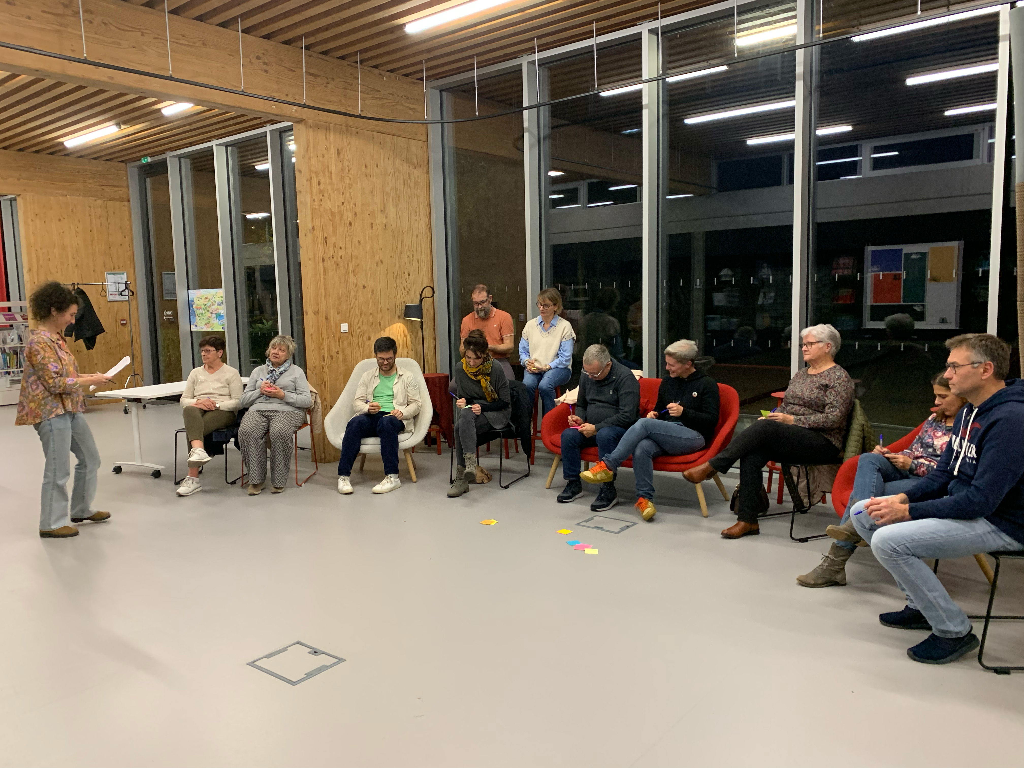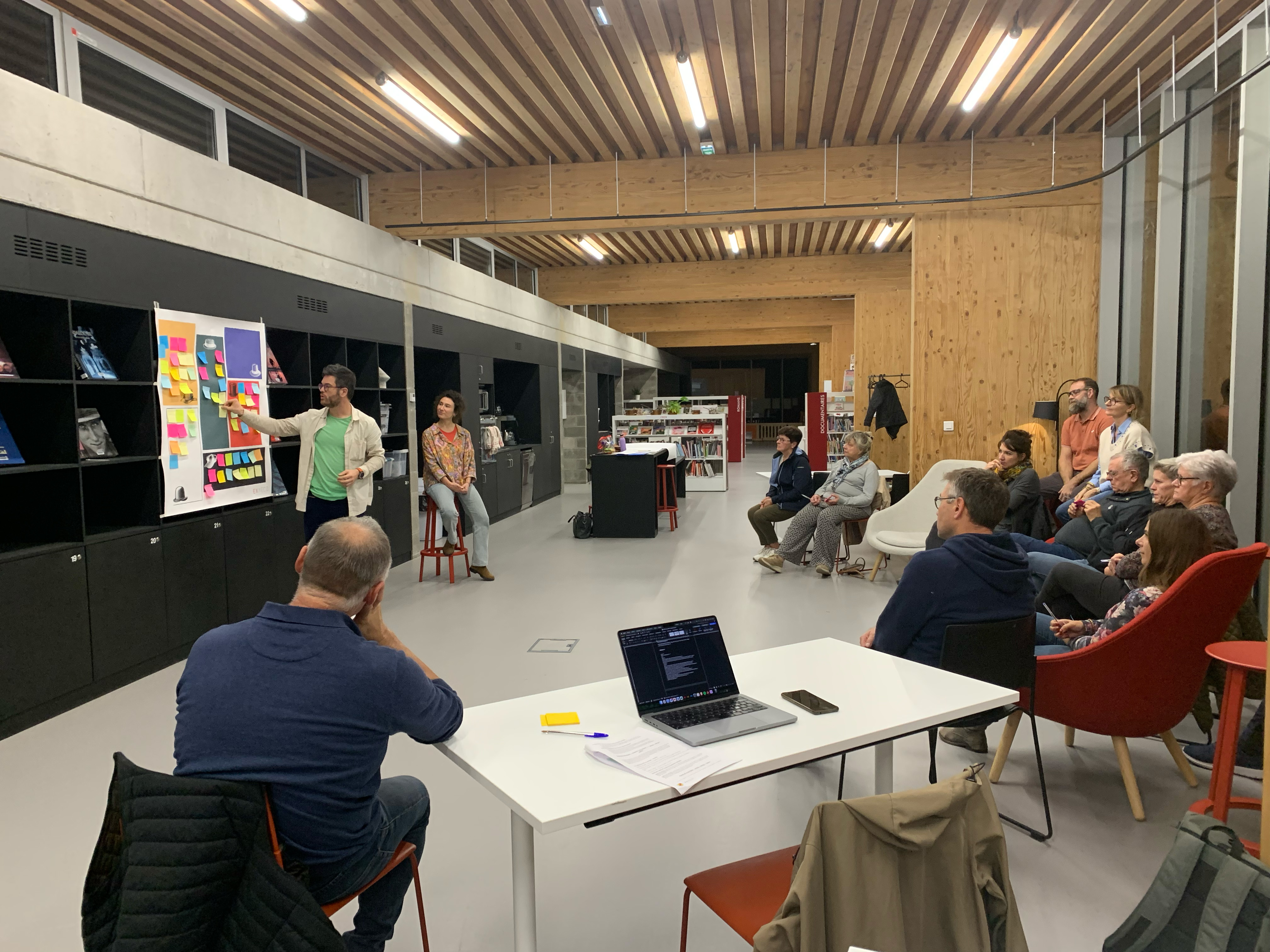Treize participant(es) se sont réuni(es) à la médiathèque le 17 octobre pour le 4e atelier de concertation.